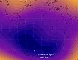 Die Swarm Satelliten offenbaren wachsende Schwachstelle im Erdmagnetfeld