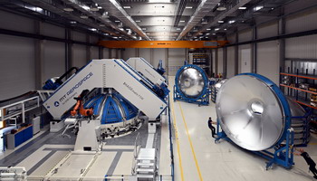 Die Oberstufe der Ariane 6 wird auf dem Prüfstand P5.2 im DLR-Zentrum für Triebwerks- und Stufentests in Lampoldshausen getestet. Der Prüfstand simuliert die Betriebsbedingungen eines Fluges vom europäischen Weltraumbahnhof in Französisch-Guayana, mit Ausnahme von Vakuum und Mikrogravitation.