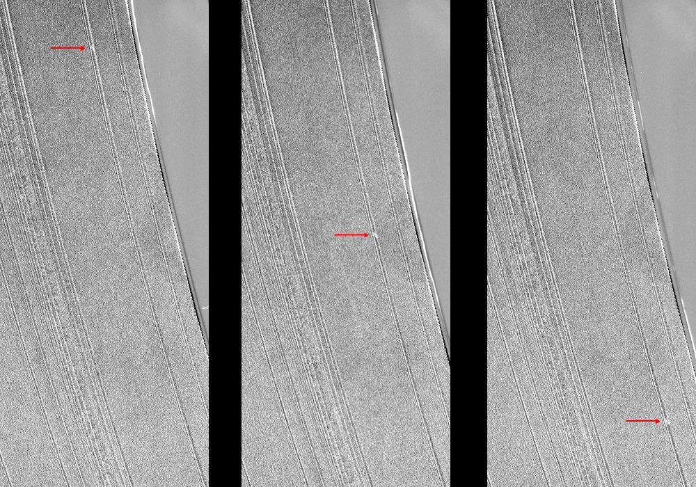 Für den 11. und 12. April sind dann mehrere Beobachtungen des äußeren A-Ringes eingeplant. Mit den entsprechenden Aufnahmen sollen zum wiederholten Mal sogenannte „Propellerstrukturen“ in diesem Ring dokumentiert werden. Bei diesen entfernt an Flugzeugpropeller erinnernden, lediglich etwa 15 bis 25 Kilometer großen Strukturen handelt es sich um kleine „Hohlräume“ innerhalb des A-Ringes, welche durch die gravitativen Einflüsse von vermutlich lediglich wenige Dutzend Kilometer durchmessenden Mini-Monden – so genannten Moonlets – verursacht werden (Raumfahrer.net berichtete über den bei der Entstehung solcher „Propellerstrukturen“ zugrunde liegenden Prozess). Durch die anzufertigenden Aufnahmen sollen die bisher bekannten Bahnparameter dieser Moonlets noch weiter verfeinert werden.