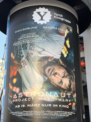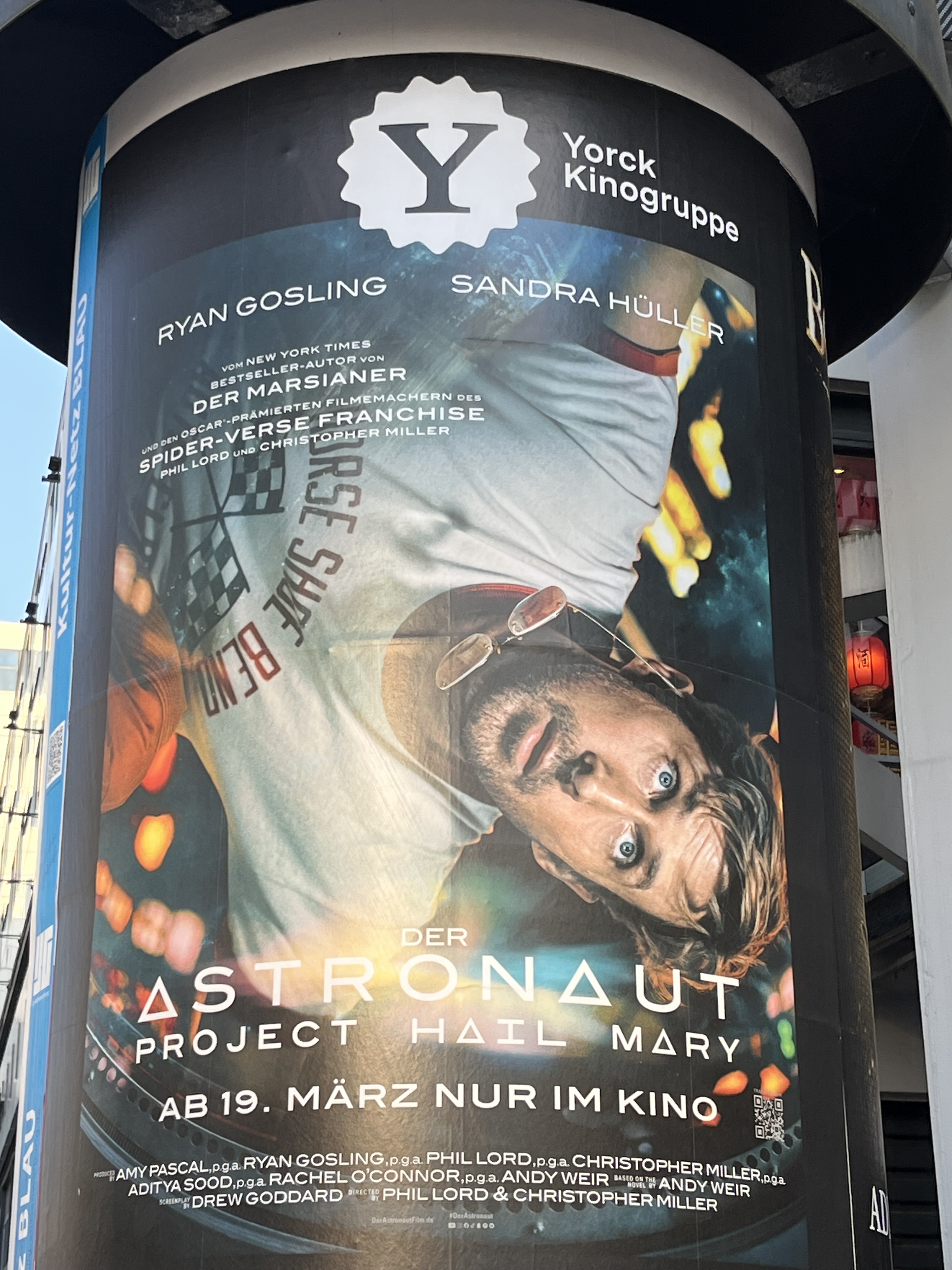 Am Donnerstag, 19.03.26, startet in den deutschen Kinos der Film „Der Astronaut“ , im Original „Project Hail Mary“. Hierbei handelt es sich um die versuchte Verfilmung des gleichnamigen Romans von Andy Weir aus dem Jahre 2021. (Wir gaben dazu zu Weihnachten eine Buchempfehlung.) Und ja, das ist genau der Andy Weir, dessen erster Roman, verfilmt als „Der Marsianer“, grandios vor zehneinhalb Jahren in unseren Kinos brillierte. Eine lange Zeit. Insofern waren die Erwartungen an diesen neuen Weir sehr hoch geschraubt. Die ab Ende 2025 präsentierten Trailer ließen einen neugierig werden. Speziell, wenn man die Buchvorlage zuvor gelesen hatte. Jetzt vor dem offiziellen Kinostart war die Neugier bei mir etwas verflogen. Warum? Bei Wikipedia konnte man nicht nur die ganze Romangeschichte detailliert nachlesen, auch zum Film wird vorab sehr viel verraten. Auch habe ich es selten erlebt, dass vor einem Kinostart so viel „Review“ im Netz zu erfahren war. Bei YouTube stolperte man laufend über Beiträge, die Alles schon gesehen hatten und euphorisch nur so sprudelten. Ein Hype, der einen schon wieder misstrauisch macht. Manchmal wurde sogar vom „Film des Jahres“ gesprochen. Die Story selbst kann man komprimiert so darstellen: Sonne stirbt. Menschheit ist bedroht. Lehrer-Astronaut wird los geschickt um Gegenmittel zu finden und trifft einen steinigen Außerirdischen, der das selbe Problem hat. Beide werden dicke Freunde und lösen das Problem. Ende gut. Oder noch kürzer: „Grace und Rocky retten Sterne.“