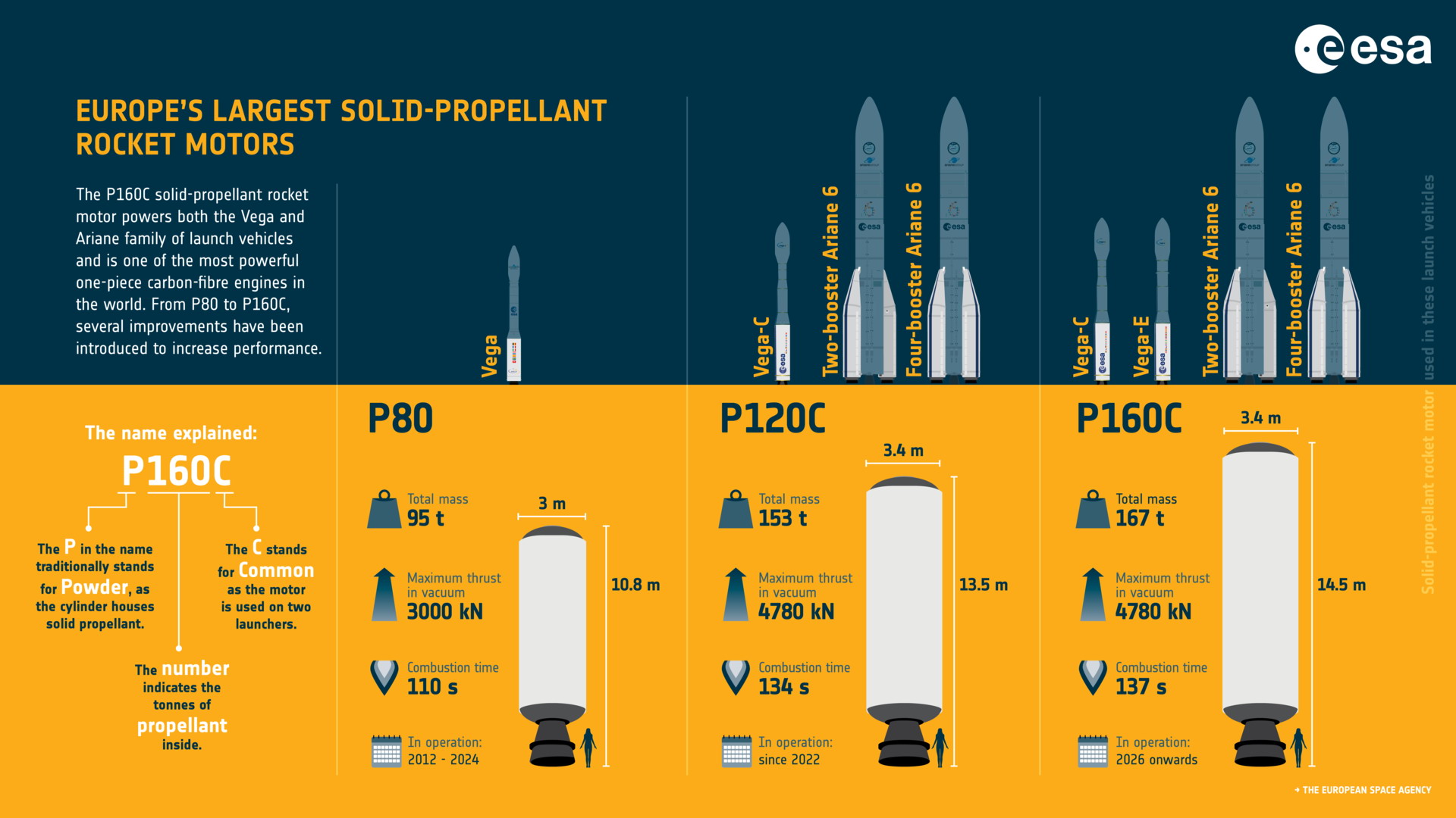 Der P120C wird derzeit als Booster für die Ariane-6-Rakete und als erste Stufe für die Vega-C-Trägerrakete eingesetzt. Der verbesserte P160C transportiert über 14 Tonnen mehr Festtreibstoff, wodurch die Leistung beider Raketen gesteigert und ihre Nutzlastkapazität und Wettbewerbsfähigkeit erhöht werden.