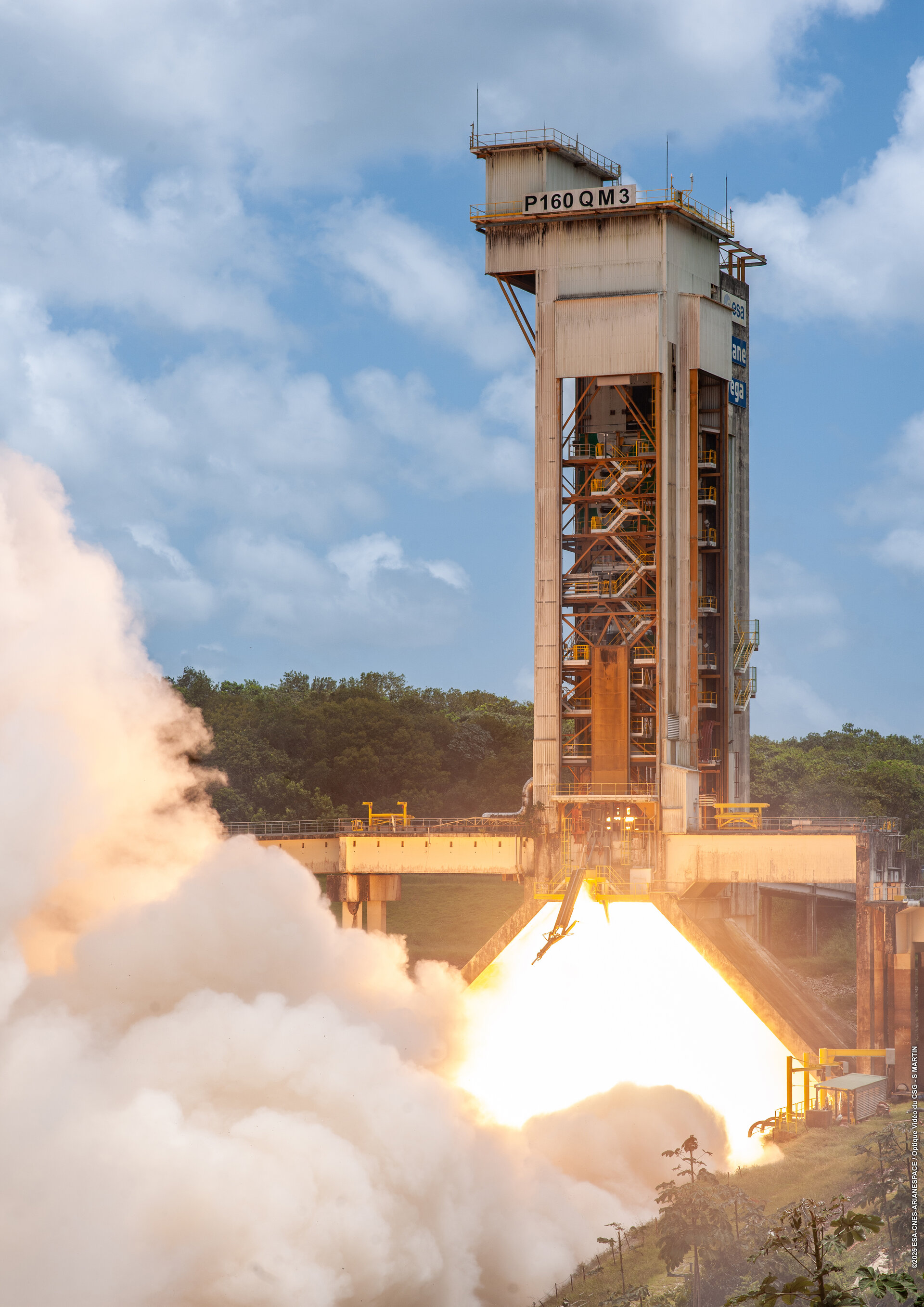 Nach dem Start im April bei einem hot-fire-test auf dem europäischen Weltraumbahnhof wurde der Feststoffraketenmotor P160C gründlich analysiert und im Rahmen einer Qualifikationsprüfung für den Flugverkehr zugelassen.