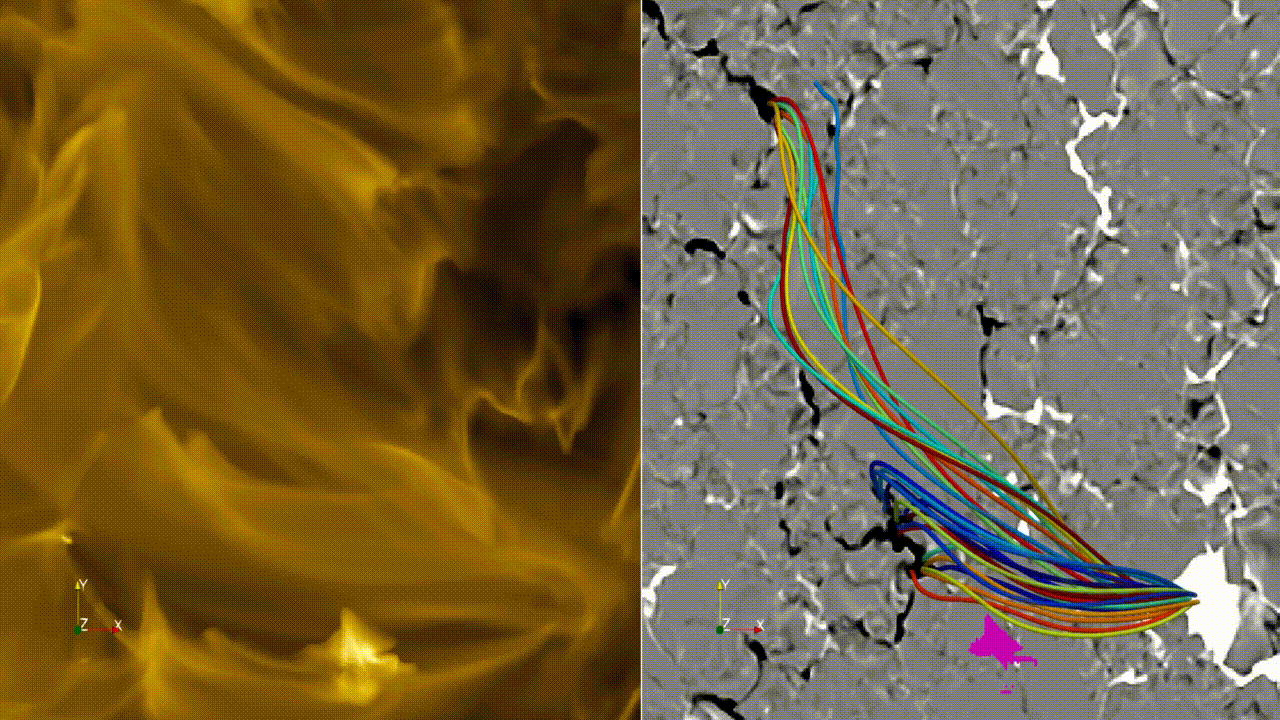 Auch in der simulierten Sonnenatmosphäre blitzen die kleinen Lagerfeuer auf. Die hellsten von ihnen unterzogen die Forscher einer eingehenden Prüfung und schauten besonders genau auf ihre Umgebung: Welche Prozesse spielen sich dort ab? Wie verändern sich die magnetischen Eigenschaften der Sonnenatmosphäre dort?