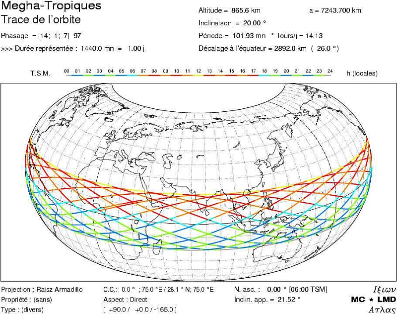 Megha-Tropiques ist katalogisiert mit der NORAD-Nr. 37.838 bzw. als COSPAR-Objekt 2011-058A.