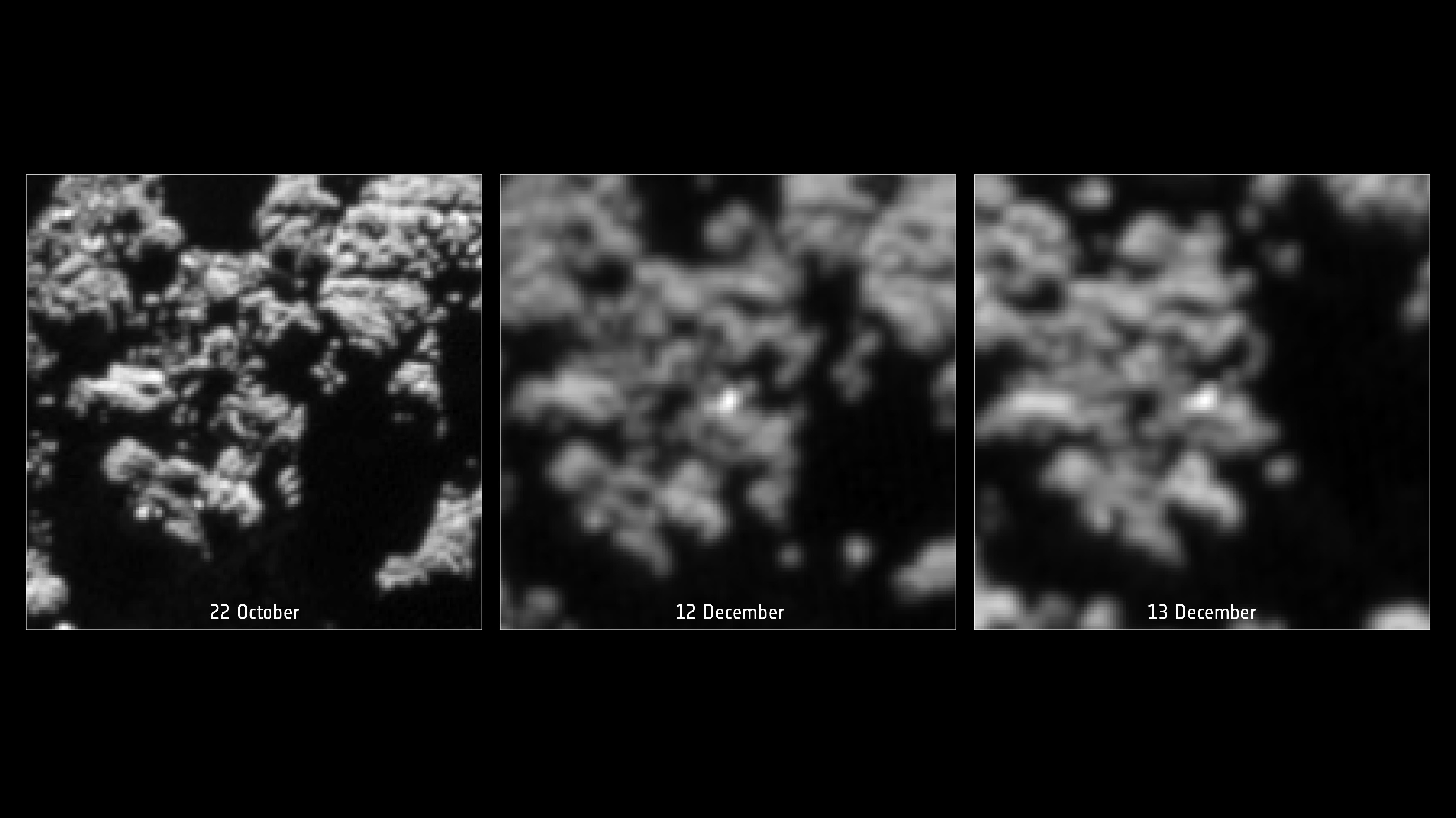 Allerdings lässt sich nicht mit Sicherheit sagen, ob diese Vermutung tatsächlich zutrifft. Wegen der vergleichsweise langen Zeitspanne, welche zwischen den ‚Vorher‘- und den ‚Nachher‘-Aufnahmen verstrichen ist, könnte dieses Objekt auch auf eine rein physikalisch bedingte Veränderung direkt auf der Kometenoberfläche – etwa die zwischenzeitlich erfolgte Freilegung von ‚frischem‘ Material – zurückzuführen sein. Die geringe Sonneneinstrahlung an dieser Stelle macht derartige Veränderungen zwar unwahrscheinlich, jedoch keineswegs unmöglich.