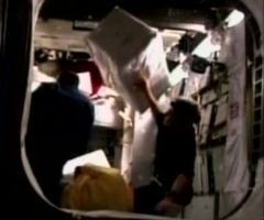 Neben den Experimenten transferierte die Besatzung auch Nahrung und andere Versorgungsgüter zur Raumstation.
