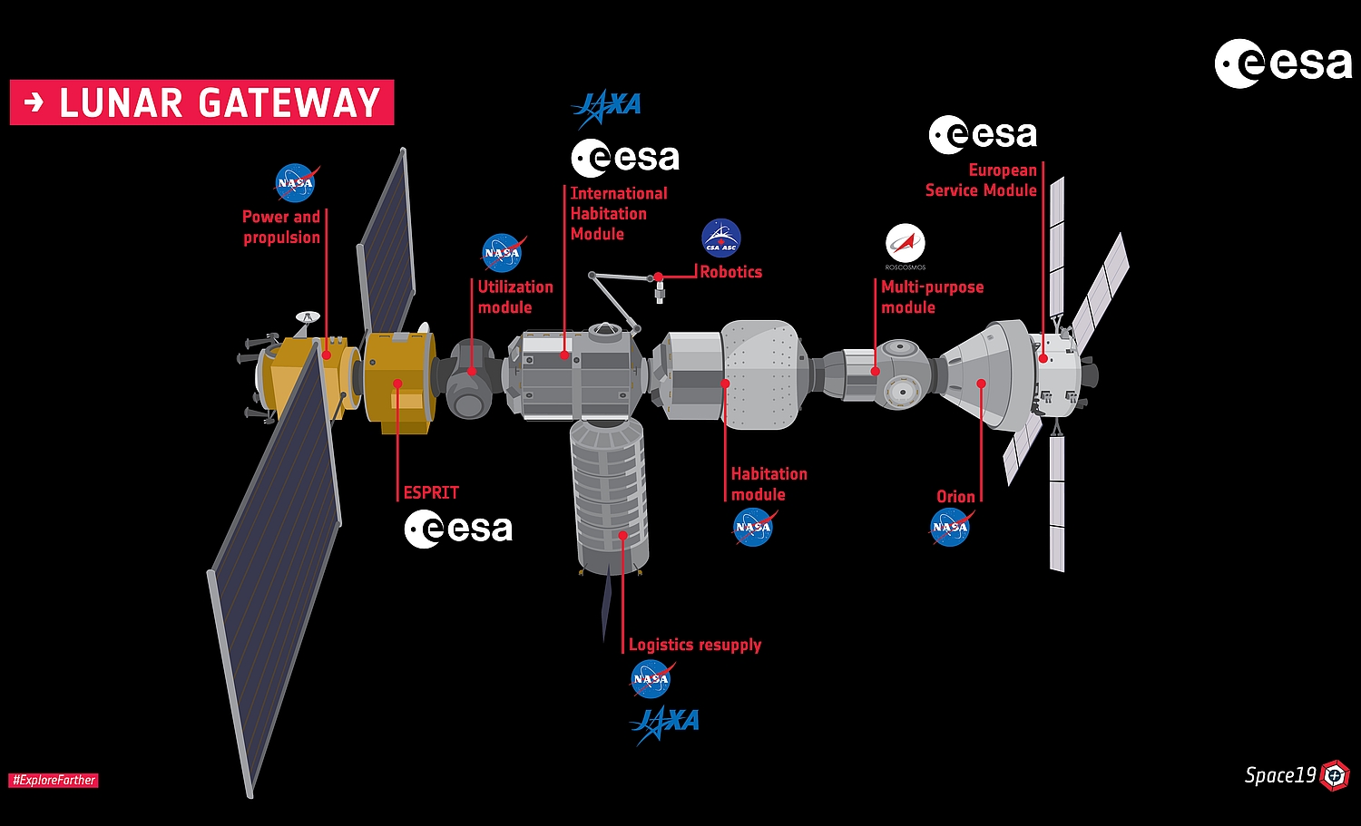 Das Space Gateway wird – ähnlich wie die ISS – ein Außenposten der Menschheit im All sein. Einen Unterschied wird es dann doch geben: anstatt seine Bahnen um die Erde zu ziehen, wird die Station den Mond umkreisen und den Astronauten und Robotern damit als Basis zur Erforschung der Mondoberfläche dienen.