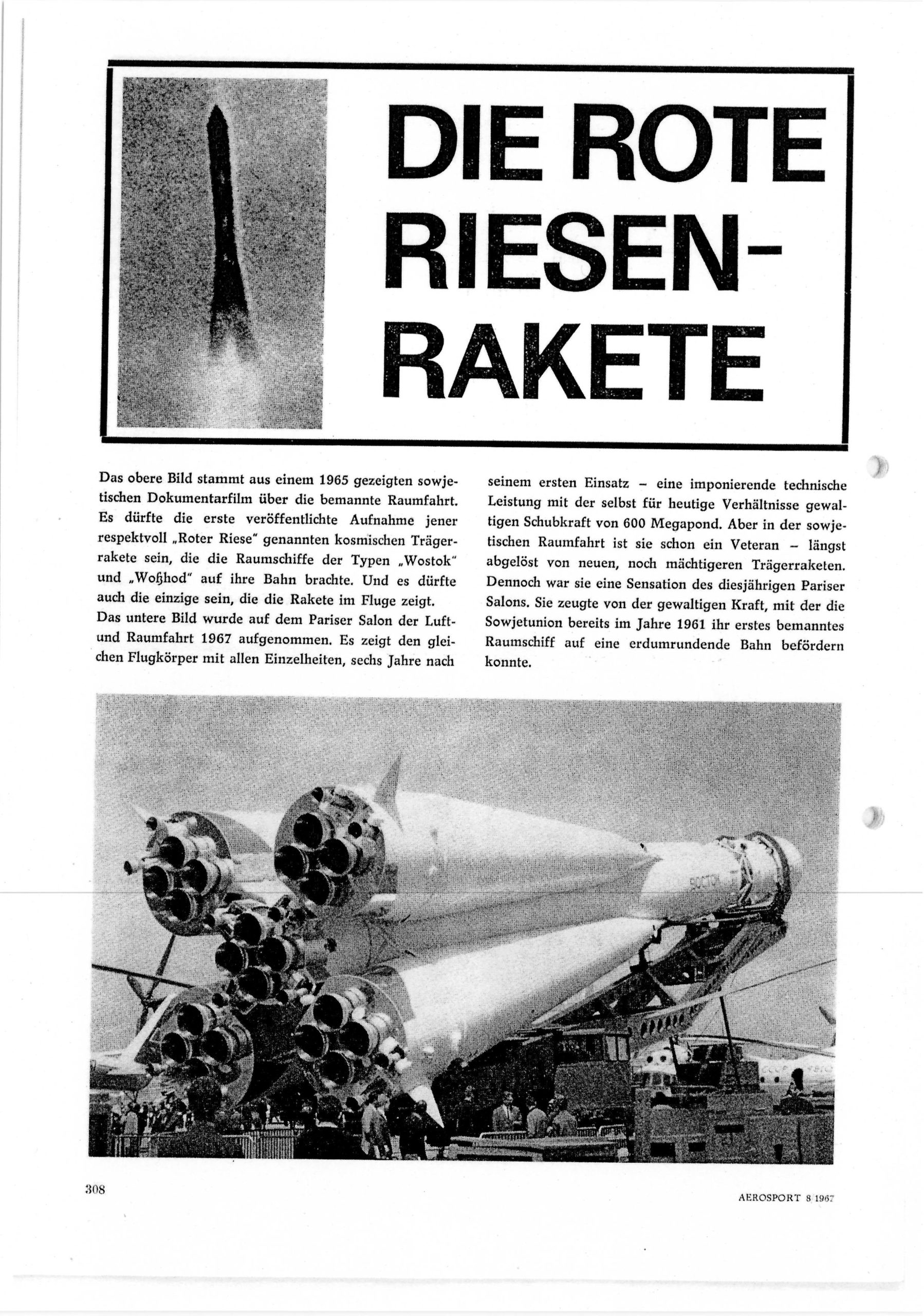 In unserer heutigen Informationsgesellschaft, wo jede mutmaßliche Info nur einen Klick entfernt ist, kann man die Geheimniskrämerei in der Hochzeit des Kalten Krieges nicht mehr rational nachvollziehen. Das betrifft speziell die sowjetische Raumfahrt. Da hier alles irgendwie mit dem sowjetischen Militär verwoben war, lag über allem der Schatten der Geheimhaltung. Anders bei den US-amerikanischen Raumfahrtprogrammen. Hier wurde man gerade zu mit Informationen zugeschüttet. Es war eben ein ganz anderer Ansatz in Sachen Öffentlichkeitsarbeit. Und während man die amerikanischen Trägerraketen in der Fachliteratur schon recht genau dargestellt sah, wusste man über die sowjetischen Raketen fast gar nichts. Es oblag den Raumfahrtjournalisten, sich aus den wenigen Informationsschnipseln ein Bild zusammen zu reimen.