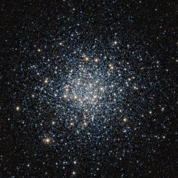 Die Kombination von Aufnahmen des 2,2-m-Teleskops der ESO in La Silla/Chile sowie des Hubble-Weltraumteleskops ermöglicht den bislang besten Einblick in diesen kleinen, aber hochinteressanten Kugelsternhaufen. Während die meisten Sterne sehr alt sind gibt es auch einige die deutlich jünger wirken. Ein Beitrag von Stefan Heykes. Quelle: ESO. Theoretisch ist die Altersverteilung in Kugelsternhaufen relativ einfach.